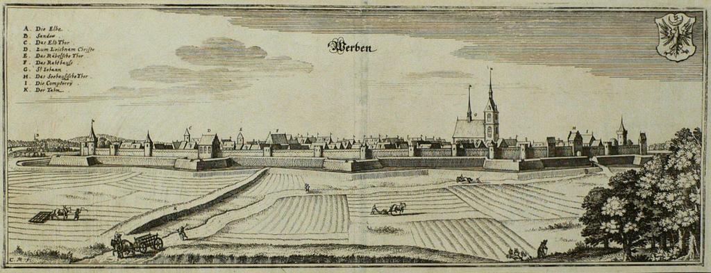 | Keywords: Caspar Merian - Werben.jpg Artwork Creator Caspar Merian Werben Elbe - Gesamtansicht Historische Ortsansicht 1652 copper engraving etching cm 13 0 35 8 object history credit line Aus Matthäus Merian d Ä Topographia Electoratus Brandenburgici et Ducatus Pomeraniae Frankfurt am Main Merian 1652 accession number http //www grafikliebhaber de/WerbenElbe_-_Gesamtansicht-_Merian-Werben/topic/Shop_Detailseite/shop_art_id/85786/tpl/koenitz_detail grafikliebhaber de PD-old-100 Werben Elbe Old maps of Saxony-Anhalt Caspar Merian |