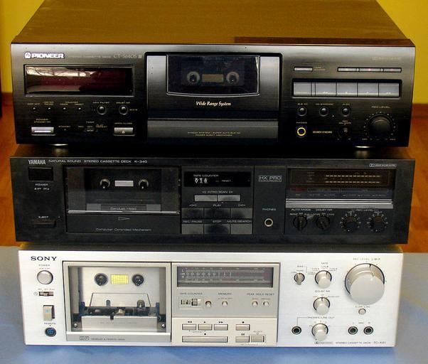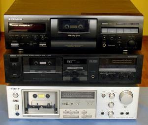 | Keywords: Cassete decks, three generations.JPG  3 generations of mid-fi cassete decks bottom to top <br>Sony TC-K61 1980<br>Yamaha K430 1987<br>Pioneer CT640 1996<br>Although on paper last generation Pioneer has outrageous specs 20-25kHz auto calibration Yamaha has the finest mechanics and Sony beats them all in sound Go figure Own 2008 NVO Cassette decks |