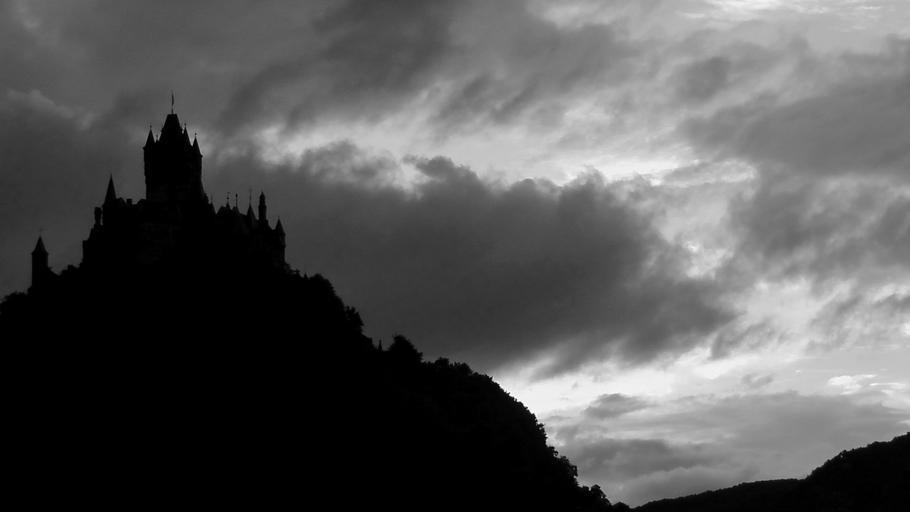 Keywords: castle architecture fortress building black and white tower mountain mood clouds mountains view atmospheric rock landscape sky atmosphere