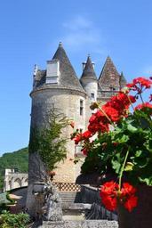 Keywords: castle chateau des milandes renaissance tower dordogne france aquitaine geranium