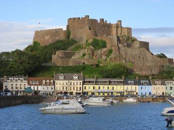 Keywords: castle fortress góry island of jersey sea port ships