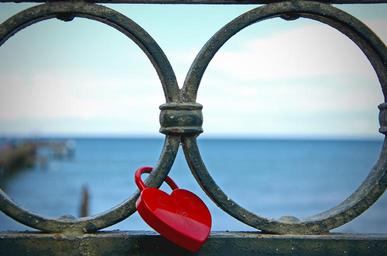 Keywords: castle heart padlock love symbol romantic bridge sea water romance red sky