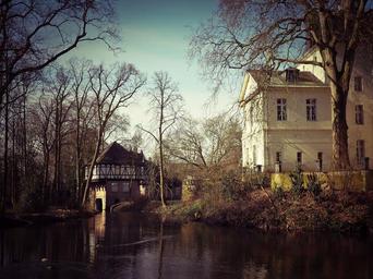 Keywords: castle manor house villa home building architecture historically romantic property places of interest picturesque monument old middle ages idyllic mystical closed eller düsseldorf