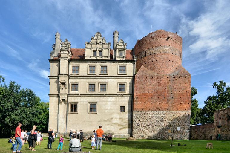 Keywords: Zamek Poland Castle Pezinie view people grass green outside