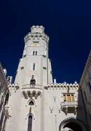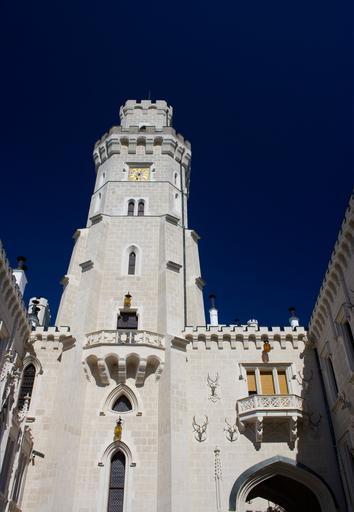 Keywords: castle tower white historical ancient architecture romanticism romantic building blue sky beautiful south bohemia czech republic europe