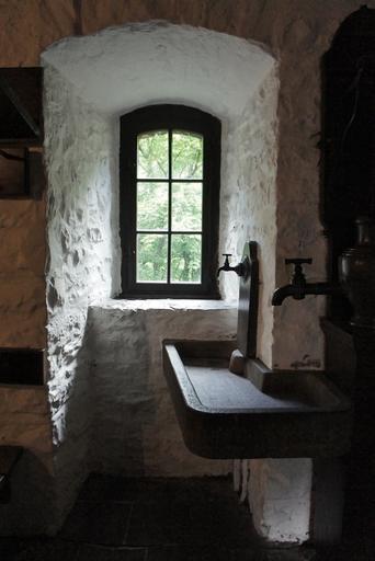 Keywords: castle youth hostel window bathroom sink old faucet masonry middle ages