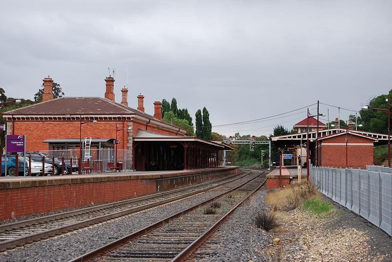 Keywords: 37 04S 144 13E Castlemaine railway station is located on the Bendigo line in Victoria, Australia. Opened 21 October 1862.