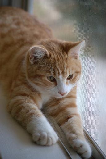 Keywords: cat animal friend pet cute feline domestic white mammal adorable looking fur orange relaxing lazy window nature sleepy