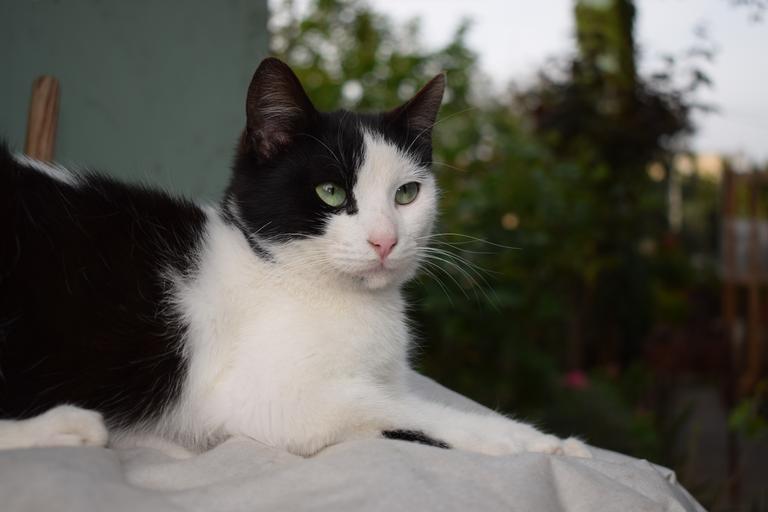 Keywords: cat animal pet cute feline kitten kitty black white green green eyes