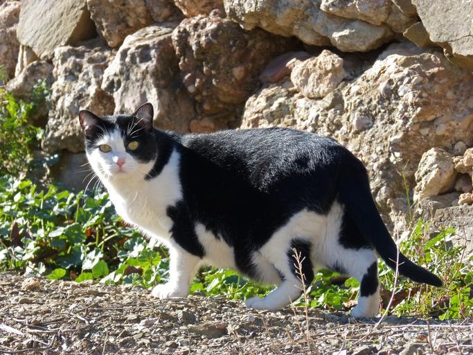 Keywords: cat black and white stalking feline