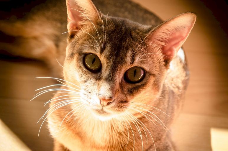 Keywords: cat cute feline kitty domestic fur close up portrait adorable face shadows sitting looking indoors