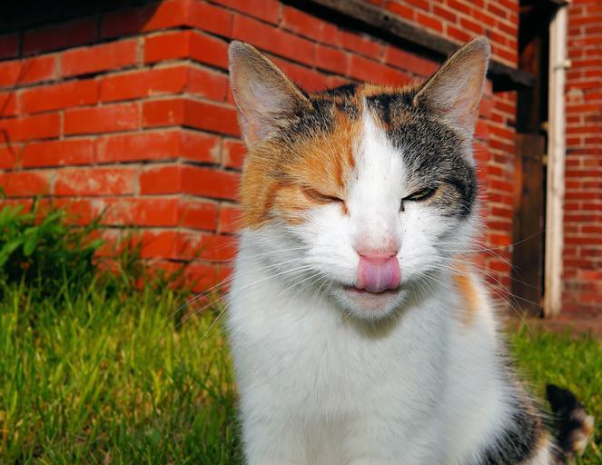 Keywords: cat domestic cat female three coloured lucky cat cat face head attention tongue cat tongue