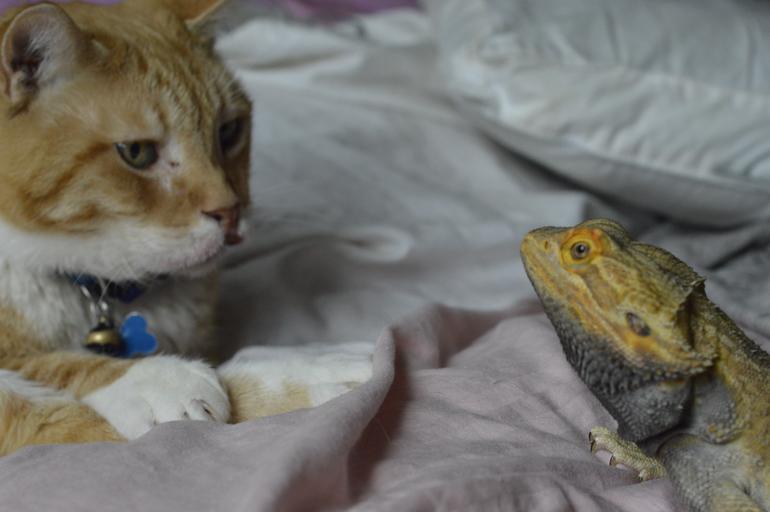 Keywords: cat dragon reptile feline animal eye to eye getting along diversity