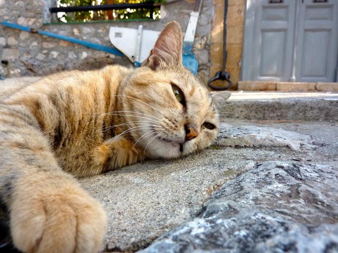 Keywords: cat greece chill out sleep relax siesta afternoon rest