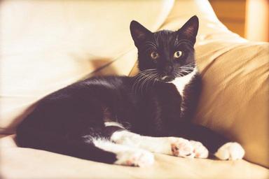 Keywords: cat kitten animal futrzak black cat golden eyes looking cat looking in the prost calm cat tomcat lying male male is domestic cat cat on a chair