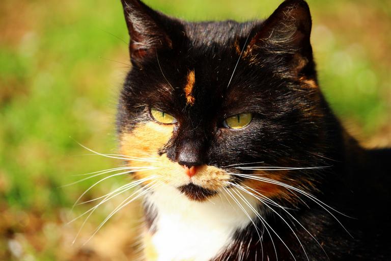 Keywords: cat kitten mieze lucky cat three coloured sun clean paw whiskers domestic cat