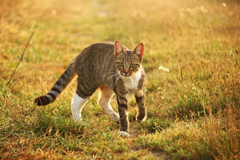 Keywords: cat kitten mieze mackerel tiger cat domestic cat grass autumn young cat