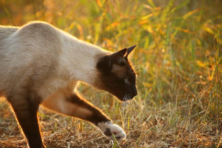 Keywords: cat kitten mieze siam siamese cat siamese breed cat sun evening light grass