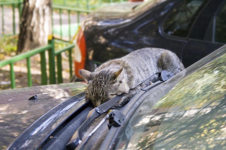 Keywords: cat machine janitor dream autumn heat yard kitten fatigue