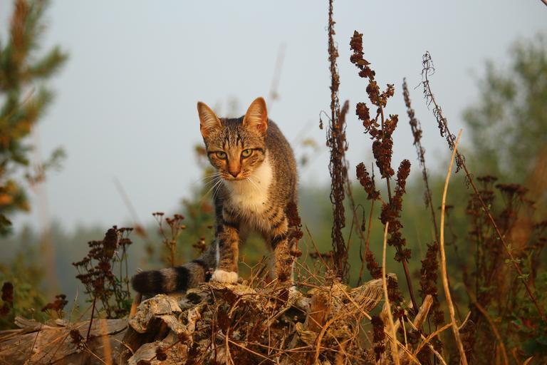 Keywords: cat mieze kitten tiger cat mackerel domestic cat dead wood autumn