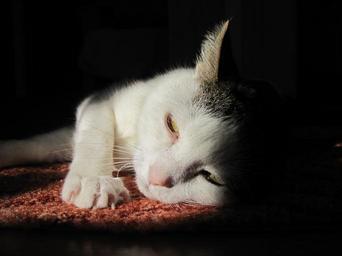 Keywords: cat mieze pet animal domestic cat sun relaxed relax cat's eyes concerns