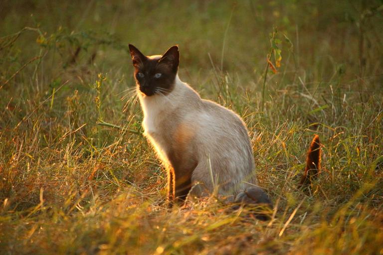 Keywords: cat mieze siamese cat siamese siam breed cat grass sun evening light