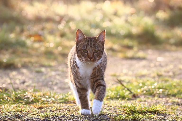 Keywords: cat morgentau grass kitten fog dewdrop meadow back light