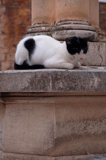 Keywords: cat pet sleeping animal black white ancient city dubrovnik
