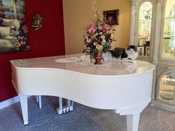 Keywords: cat piano animal domestic white pet flowers adorable cute portrait