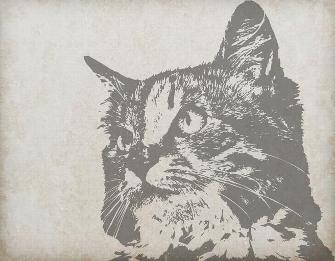 Keywords: cat portrait close-up head face beautiful vintage old retro linen texture background pet cut out rubber stamp art black pretty kitty feline