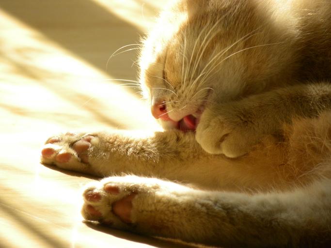 Keywords: cat red feline sunlight lazy wash pet