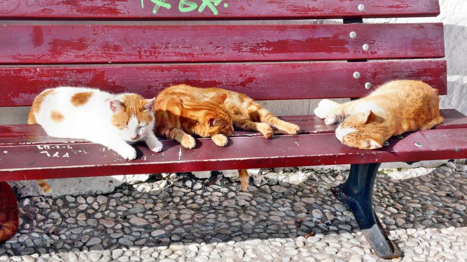 Keywords: cat rest summer ginger fur dormant bank warm homeless