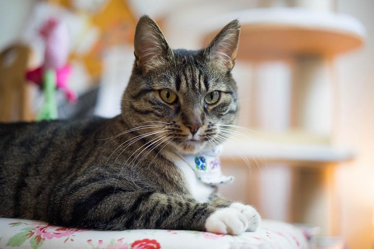 Keywords: cat sitting looking face portrait pet domestic feline cute eyes head resting kitty furry indoors tabby