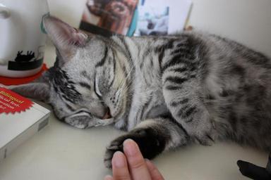 Keywords: cat sleeping give me five