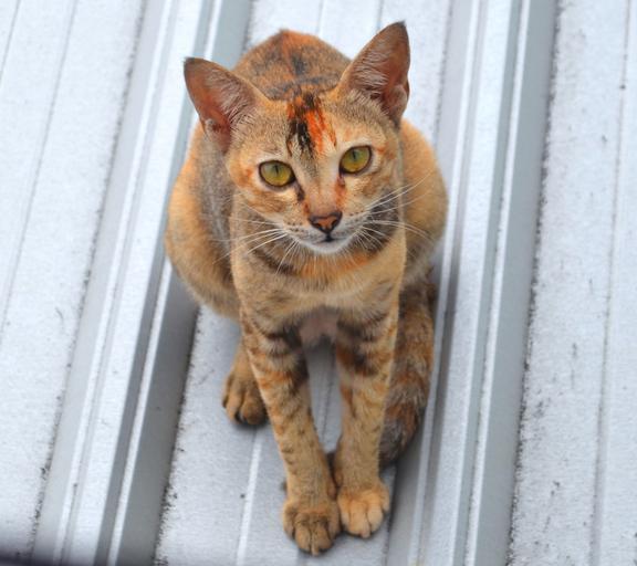 Keywords: cat stare roof animal ear eye metal one stay single orange