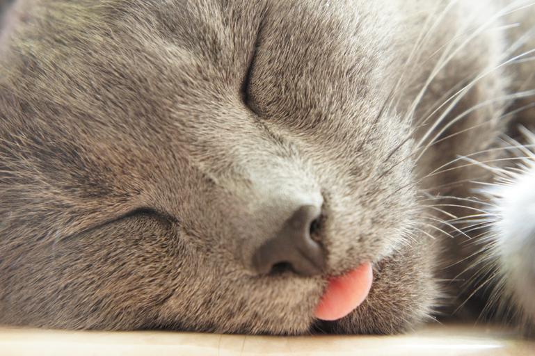Keywords: cat tongue grey sleep relaxation pink whiskers
