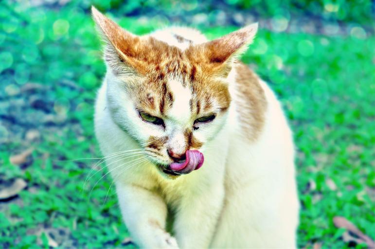 Keywords: cat tongue licking whiskers animal pet