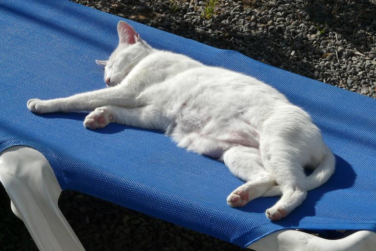 Keywords: cat white lazy sun lounger holiday rest sleep animal fur domestic cat concerns adidas recovery relax sweet lazing around tired pet relaxation mieze