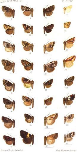 | Keywords: CATALOGUE-BM-PLATE CLXV.jpg en PLATE CLXV 1 Lithacodia larentiformis f Vol X p 538 Sikhim 2 L glaucopis f p 538 Sikhim 3 L muscosula m p 541 Canada H9047 Gn 1852 4 L falsa m p 541 Japan 5 L syggenes m p 543 Peru 6 L onytes m p 544 Brazil 7 L confusa f p 544 W China 8 L clandestina m p 545 Queensland 9 L nivata m p 546 W China 10 L penthis m p 547 Mexico 11 L hinorbis f p 548 Cape Colony 12 L valta m p 549 Mexico 13 L caenia f p 550 Assam 14 L picta m p 551 Assam 15 L geoga f p 552 Mexico 16 L merta f p 553 Brazil 17 L holophaea m p 554 Assam 18 L mirella f p 554 Guatemala 19 Hyperstrotia molybdota m p 556 Assam 20 H inordinata f p 557 Assam 21 H meeci m p 558 Br N Guinea 22 H oletta f p 559 Brazil 23 H macroplaga m p 560 Ceylon 24 H semiochrea m p 561 Assam 25 H albida f p 561 Persia 26 Himerois univittata m p 565 New Britain 27 Eustrotia albifissa m p 576 Natal 28 E munda m p 577 W China 29 E diascia m p 579 Br E Africa 30 E tripartita f p 580 W China 31 E argotypa m p 582 Queensland 32 E chaptina f p 582 Queensland CATALOGUE OF THE NOCTUIDAE IN THE COLLECTION OF THE BRITISH MUSEUM Sir GEORGE F HAMPSON Bart 1903-1913 PD-old Catalogue of Lepidoptera Phalaenae in the British Museum Vol 10 |