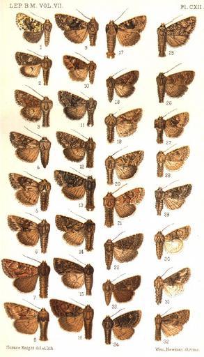 | Keywords: CATALOGUE-BM-PLATE CXII.jpg en PLATE CXII 1 Trachea macerata f Vol VII p 164 Manitoba H9619 Phosphila miselioides Gn 1852 a macerata Sm 1902 2 T semilunata m p 164 Washington H9352 Apamea semilunata Grt 1881 3 T inordinata m p 165 Massachusetts H9353 Apamea inordinata Morr 1875 4 T cinefacta f p 166 Washington H9357 Apamea cinefacta Grt 1881 5 T centralis m p 167 Oregon H9354 Apamea centralis Sm 1891 6 T unita f p 168 Oregon H9355 Apamea unita Sm 1904 7 T sora m p 169 Alberta H9339 Apamea auranticolor Grt 1873 b sora Sm 1903 8 T barnesi m p 169 Wyoming H9339 Apamea auranticolor Grt 1873 a barnesi Sm 1899 9 T lona f p 170 Washington H9362 Apamea indocilis Wlk 1856 10 T turbulenta f p 171 New York H9618 Phosphila turbulenta Hbn 1818 11 T allecto m p 173 Alberta H9419 Oligia mactata Gn 1852 a allecto Sm 1899 12 T mactata m p 174 New York H9419 Oligia mactata Gn 1852 13 T ferens m p 175 Alberta H9362 Apamea indocilis Wlk 1856 a runata Sm 1899 14 T separans m p 175 New York H9362 Apamea indocilis Wlk 1856 a runata Sm 1899 15 T perpenoa m p 176 Arizona H9345 Apamea perpensa Grt 1881 16 T commixta m p 178 Japan 17 T indocilis m p 179 New York H9362 Apamea indocilis Wlk 1856 18 T tusa m p 181 California H9405 Oligia tusa Grt 1878 19 T divesta m p 181 Vancouver H9419 Chytonix divesta Grt 1874 20 T cerivana m p 182 Alberta H9364 Apamea finitima Gn 1852 a cerivana Sm 1900 21 T finitima m p 183 New York H9364 Apamea finitima Gn 1852 22 T fumosa f p 185 Colorado H9527 Aseptis fumosa Grt 1879 23 T fumeola f p 186 California H9530 Aseptis fumeola Hamp 1908 24 T binotata m p 186 Br Columbia H9532 Aseptis binotata Wlk 1865 25 T adnixa m p 187 Nevada H9533 Aseptis adnixa Grt 1880 26 T paviae f p 188 California H9534 Aseptis paviae Stkr 1874 27 T indirecta m p 188 Washington H9401 Oligia indirecta Grt 1875 28 T catalina m p 189 California H9528 Aseptis catalina Sm 1899 29 T characta f p 190 Nevada H9543 Aseptis characta Grt 1880 30 T jocasta f p 190 Dakota H9398 Eremobina jocasta Sm 1900 31 T erica m p 191 Utah H9543 Aseptis characta Grt 1880 a erica Sm 1905 32 T pausis m p 192 California H9535 Aseptis pausis Sm 1899 CATALOGUE OF THE NOCTUIDAE IN THE COLLECTION OF THE BRITISH MUSEUM Sir GEORGE F HAMPSON Bart 1903-1913 Apamea auranticolor2 JPG Apamea auranticolor3 JPG Apamea centralis JPG Apamea cinefacta JPG Apamea finitima2 JPG Apamea finitima JPG Apamea indocilis2 JPG Apamea indocilis3 JPG Apamea indocilis4 JPG Apamea indocilis JPG Apamea inordinata JPG Apamea perpensa JPG Apamea semilunata JPG Apamea unita JPG Aseptis adnixa JPG Aseptis binotata JPG Aseptis catalina JPG Aseptis characta2 JPG Aseptis characta JPG Aseptis fumeola JPG Aseptis fumosa JPG Aseptis pausis JPG Aseptis paviae JPG Chytonix divesta JPG Eremobina jocasta JPG Oligia indirecta JPG Oligia mactata2 JPG Oligia mactata JPG Oligia tusa JPG Phosphila miselioides JPG Phosphila turbulenta JPG Trachea commixta JPG PD-old Catalogue of Lepidoptera Phalaenae in the British Museum Vol 4 |