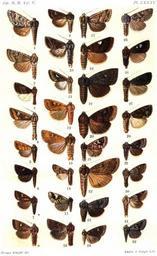 Keywords: CATALOGUE-BM-PLATE LXXXV.jpg en PLATE LXXXV 1 Hadula longicornis m Vol V p 246 E Turkestan 2 H insolita m p 248 W Turkestan 3 Nephelistis furva m p 252 Mexico 4 Hydroeciodes pexa m p 254 Mexico 5 H azteca f p 256 Mexico 6 H cauta f p 256 Costa Rica 7 H leucogramma f p 257 Brazil 8 Chabuata notata m p 259 Illinois H10628 Tricholita notata Stkr 1898 9 C fistula m p 261 California H10630 Tricholita fistula Harv 1878 10 C mutina m p 261 Mexico 11 C inconspicua m p 261 Arizona H10593 Hexorthodes inconspicua Grt 1883 12 C angulifera m p 266 Kashmir 13 C albicosta m p 267 Punjab 14 C ociosa m p 269 Ecuador 15 C amoeba f p 269 Br E Africa 16 C dulcinea m p 270 Chili 17 C subsocia m p 271 Brazil 18 C albirena f p 271 Brazil 19 C amp1a f p 272 Brazil 20 C rectilinea f p 273 Argentina 21 Lasianobia decreta m p 276 Tibet 22 Manobia grisea m p 277 Japan 23 Hysia inconstans f p 279 New Zealand 24 H senatoria m p 281 Arizona H10603 Hexorthodes senatoria Sm 1900 25 H gussata m p 282 Alberta H10493 Orthosia segregata Sm 1893 26 H niphadopa f p 283 Hawaii 27 H anthracias m p 284 Hawaii 28 H violascens f p 286 N China 29 H modesta m p 286 New York H10569 Ulolonche modesta Morr 1874 30 H disticha m p 287 Texas H10573 Ulolonche disticha Morr 1875 31 H dilecta m p 287 Colorado H10572 Ulolonche dilecta Hy Edw 1885 32 H fasciata m p 288 New Mexico H10575 Ulolonche fasciata Grt 1873 CATALOGUE OF THE NOCTUIDAE IN THE COLLECTION OF THE BRITISH MUSEUM Sir GEORGE F HAMPSON Bart 1903-1913 PD-old Catalogue of Lepidoptera Phalaenae in the British Museum Vol 4