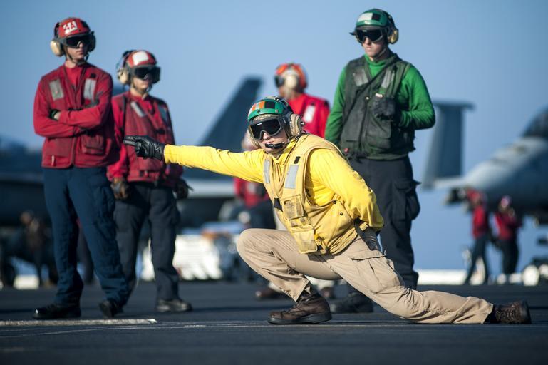 Keywords: Catapult officer on USS Harry S. Truman (CVN-75) giving launch signal in 2013.JPG en U S Navy Lt Christopher Miller from Camdenton Missouri USA signals an aircraft to launch from the flight deck of the aircraft carrier USS Harry S Truman CVN-75 in the Gulf of Oman 2013-12-07 131207-N-ZG705-102 Navy http //www navy mil/view_image asp id 167003 U S Navy photo by Mass Communication Specialist Seaman Karl Anderson PD-USGov-Military-Navy Aircraft carrier take offs USS Harry S Truman CVN-75 flight deck |