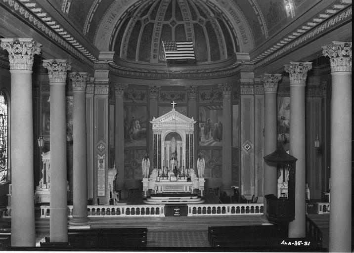 | Keywords: Cathedral of Immaculate Conception Mobile 1.jpg Cathedral of the Immaculate Conception in Mobile Alabama View of the west end of the nave from the organ balcony showing sanctuary and apse Historic American Buildings Survey http //hdl loc gov/loc pnp/hhh al0421 HABS ALA 49-MOBI 36-11 1936-10-23 E W Russell Photographer ALA 49-MOBI 36-11 Interior of the Cathedral of Immaculate Conception Mobile | ||||