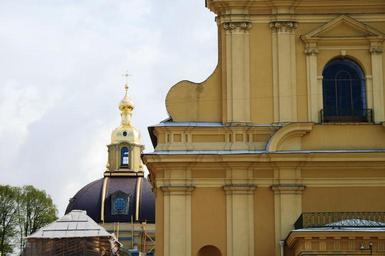 Keywords: cathedral russian church orthodox building yellow architecture window arch curves dome black sky