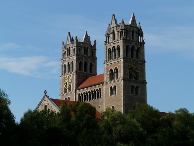 Keywords: catholic parish church church parish church st maximilian munich heinrich von schmidt neo romanesque church steeples towers