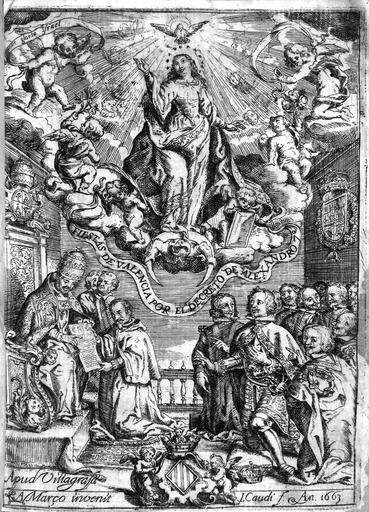 | Keywords: Caudi-marzo.jpg es Frontispicio del libro de Juan Bautista Valda Solenes fiestas que celebró Valencia a la Inmaculada Concepción de la Virgen María Valencia 1663 Grabado calcográfico 190 x 130 mm firmado Apud Villagrasa/A Março invenir / J Caudí f An 1663 1663 http //bivaldi gva es/es/catalogo_imagenes/grupo cmd path 1004325 responsabilidad_civil on Andrés Marzo y José Caudí PD-old-100 Uploaded with UploadWizard José Caudí | ||||