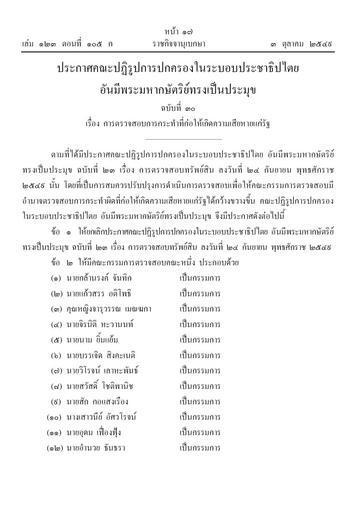 | Keywords: CDRAnnouncement-No30-firstpage.JPG en The first page of the Announcement of the Council for Democratic Reform No 30 Re Scrutiny of Acts Detrimental to the State dated September 30 BE 2549 2006 as published in the Government Gazette volume 123/part 105 A/page 17/October 13 2006 This is a page of Thai legislation which is not a copyright-work under Thailand's Copyright Act BE 2537 1994 th หน้าแรกของ ประกาศคณะปฏิรูปการปกครองในระบอบประชาธิปไตยอันมีพระมหากษัตริย์ทรง ป็นประมุข ฉบับที่ ๓๐ รื่อง การตรวจสอบการกระทำที่ก่อให้ กิดความ สียหายแก่รัฐ ลงวันที่ ๓๐ กันยายน พ ศ ๒๕๔๙ ซึ่งประกาศในราชกิจจานุ บกษา ล่ม ๑๒๓/ตอนที่ ๑๐๕ ก/หน้า ๑๗/๑๓ ตุลาคม ๒๕๔๙ นี้ ป็นหน้าหนึ่งของกฎหมายไทย ซึ่งไม่ ป็นงานอันมีลิขสิทธิ์ตามพระราชบัญญัติลิขสิทธิ์ พ ศ ๒๕๓๗ own Clumsy 2010-04-16 PD-TH-exempt Thaksin Shinawatra's assets confiscation case |