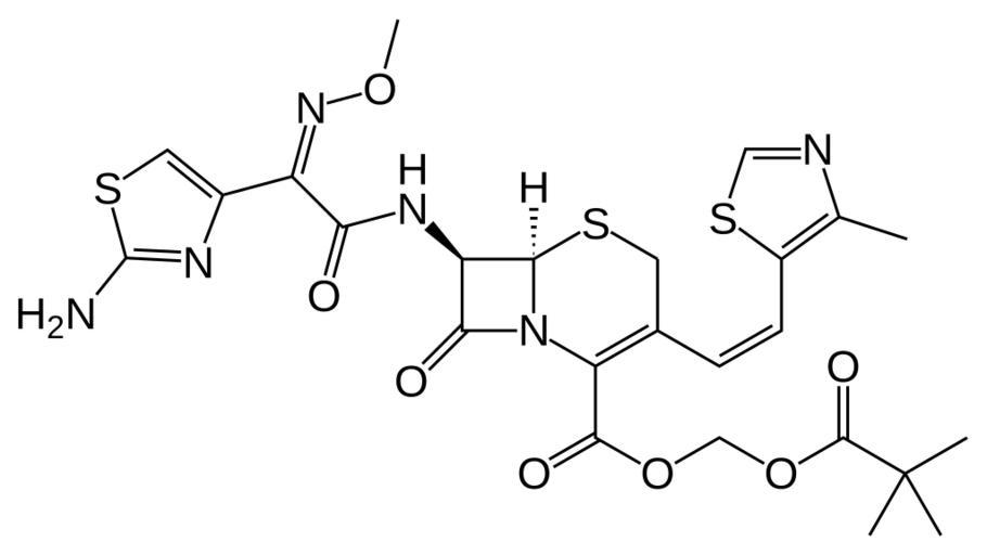 Keywords: Cefditoren pivoxil.svg validSVG Skeletal formula of cefditoren pivoxil a prodrug of cefditoren Created using http //www acdlabs com/download/chemsk html ACD/ChemSketch 10 0 and Inkscape Own 2008-08-24 Fvasconcellos Cephalosporin antibiotics Oximes Aminothiazoles Prodrugs Pivalate esters |