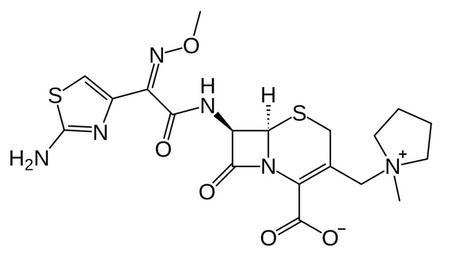 Keywords: Cefepime.svg validSVG Skeletal formula of cefepime Created using http //www acdlabs com/download/chemsk html ACD/ChemSketch 10 0 and Inkscape Own 2008-08-23 Fvasconcellos Cephalosporin antibiotics Oximes Azolidines Aminothiazoles Zwitterions |
