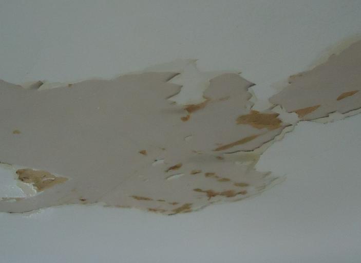 Keywords: Ceiling sheetrock damaged by water so paint was peeling.jpg en Most likely moisture possibly from a vaporizer caused the paint to peel off of a sheetrocked ceiling 2012-10-17 11 37 01 own Tomwsulcer cc-zero Uploaded with UploadWizard Drywalls Water damage Compromised drywall |